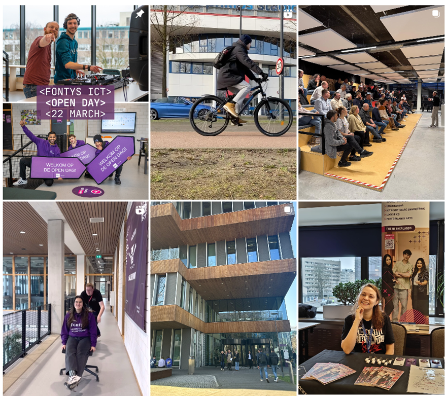 I analyzed the existing FontysICT Instagram account, as well as other educational and creative production accounts on Instagram (e.g., @fontysict, @creativemediacollege, and @pixar). I focused on the following aspects:
