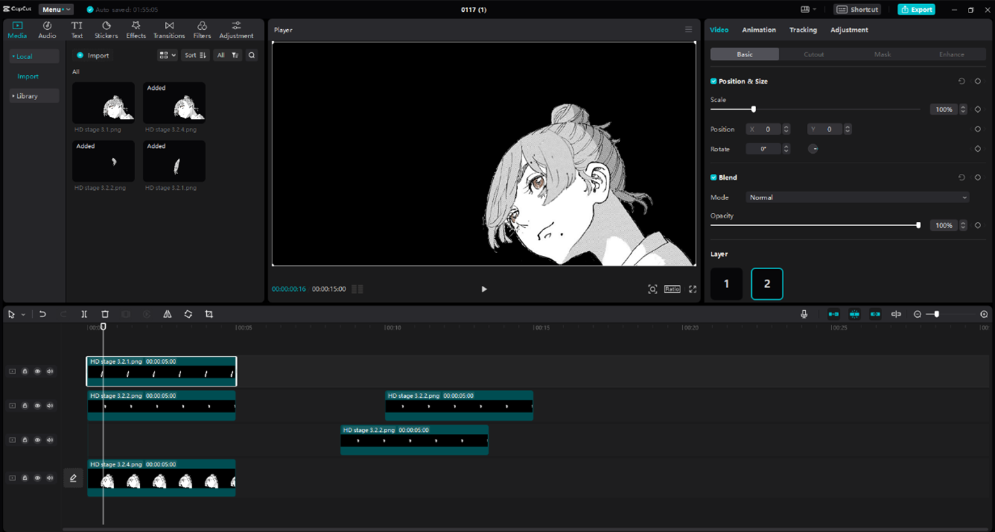 I made a second one from this image, this one is way easier to make because the character is facing us instead of looking away. This makes animating the hair and eyes easier, so this one turned out fairly well.