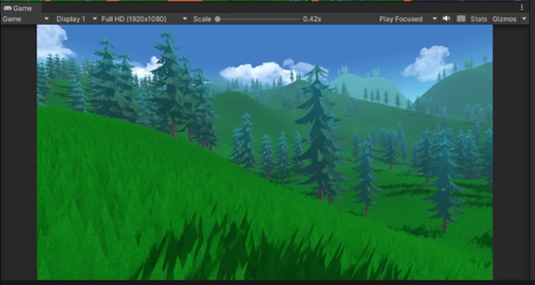 This was a 3d world I made for a first-person game. It contains trees and grass I pulled from an asset package, this was easier than I thought and really fun to have an insight on how these are built.