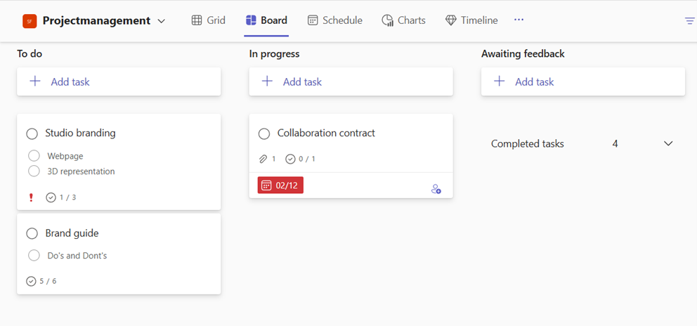 For the project we made a planning on Microsoft teams that keeps everyone updated on what each person is doing. The ability to give a task a deadline is also very helpful and gives insight on what is important to do and when it should be done.