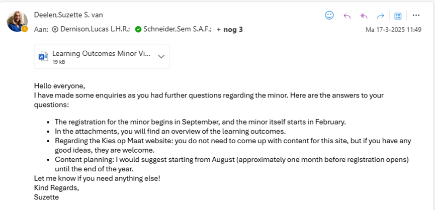 For the group project we chose Fontys minor marketing about Virtual Production. This choice was made based on our strengths and preferences, and this was our first pick out of all the presentations we had for all the options. After getting the thumbs up on the Marketing for the minor Virtual Production we sent the Client a message to ask if we can meet them and ask them questions about what they expect us to make.