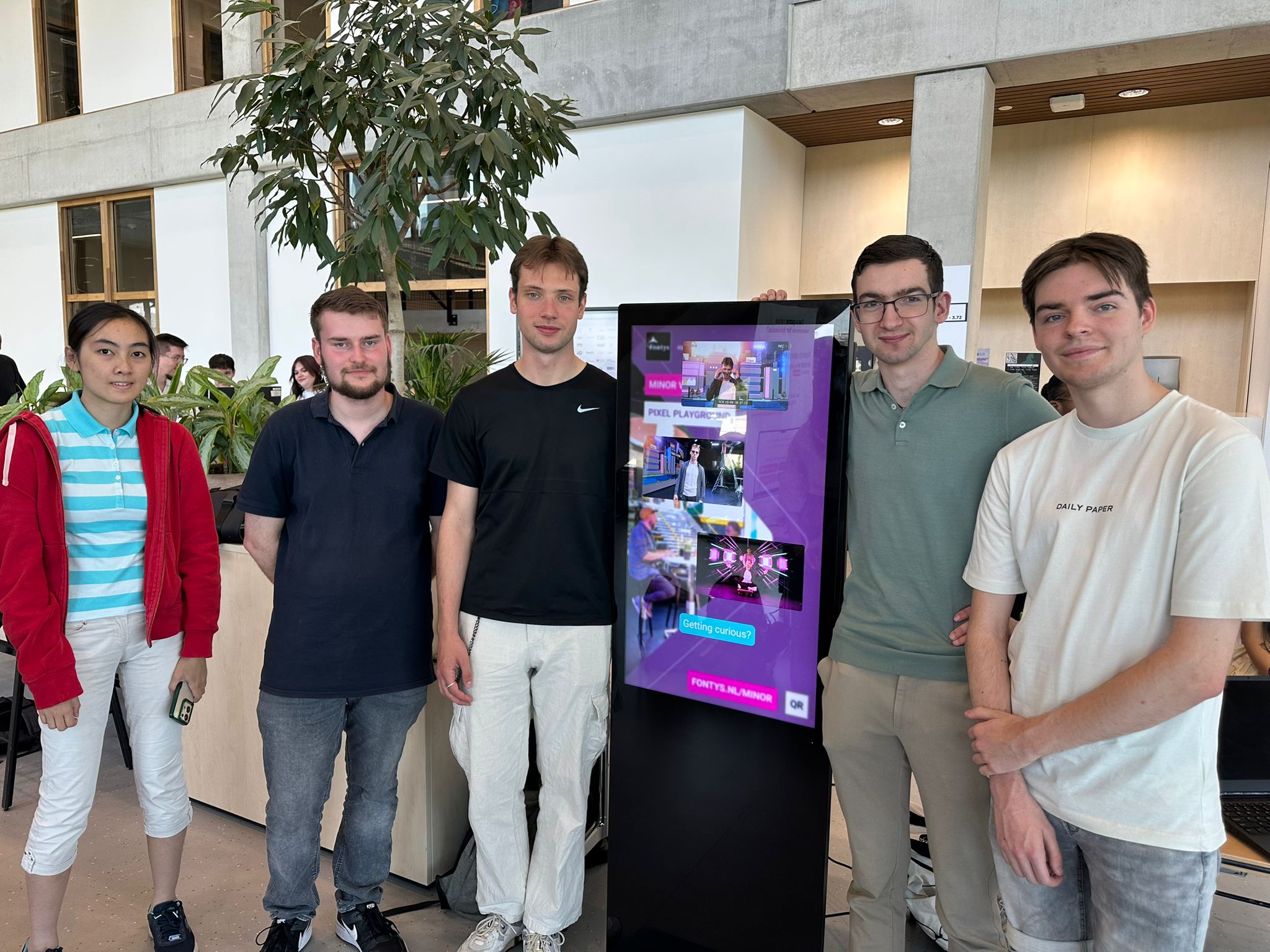We had our final presentations and our client was there too. She really loved our digital interactive poster where we can show videos and information on! she took a picture of us with the screen and she told us that they will use our interactive poster for the marketing! Mission succes!