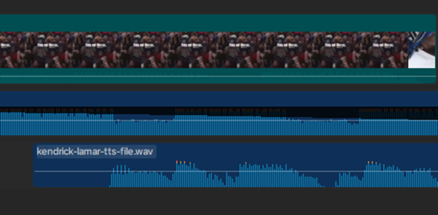 And also add the text to speech file for the AI voice of Kendrick Lamar so you hear him talking over the music.