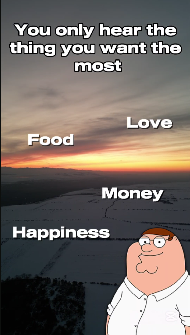 For this video I used a joke that is trending on Tiktok at the moment, you see a few words on the screen and you hear a voice saying "you only hear the thing you want the most." and then it says something completely different from any of the words on screen.